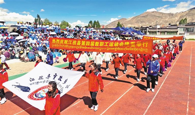 運(yùn)動(dòng)會(huì)開幕式上,各方隊(duì)入場場景。記者 扎西頓珠 攝