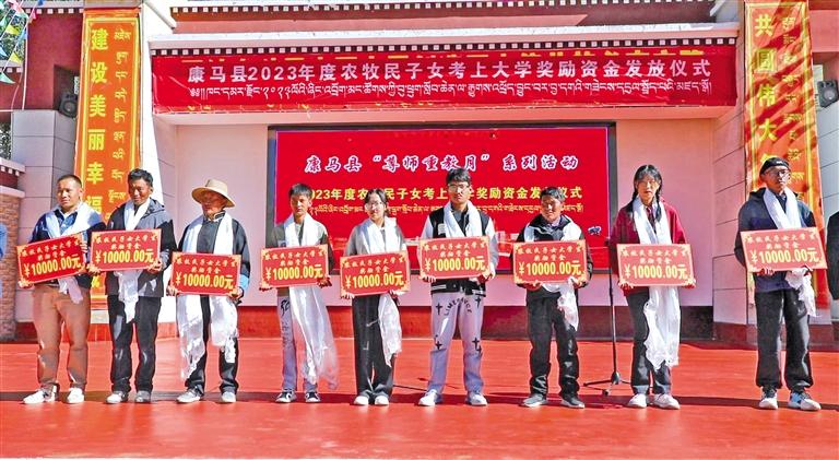 9月16日,日喀則市康馬縣舉辦2023年度農(nóng)牧民子女考上大學(xué)獎勵資金發(fā)放儀式,共為考取本科院校的151名學(xué)生、考取??圃盒5?24名學(xué)生兌現(xiàn)獎勵資金166.5萬元。據(jù)統(tǒng)計,康馬縣自2016年實施農(nóng)牧民子女考上大學(xué)獎勵政策以來,共為1812名考上大學(xué)的康馬籍農(nóng)牧民子女應(yīng)屆高中畢業(yè)生兌現(xiàn)獎勵資金1477.1萬元,助力廣大康馬籍農(nóng)牧民子女實現(xiàn)大學(xué)夢想。