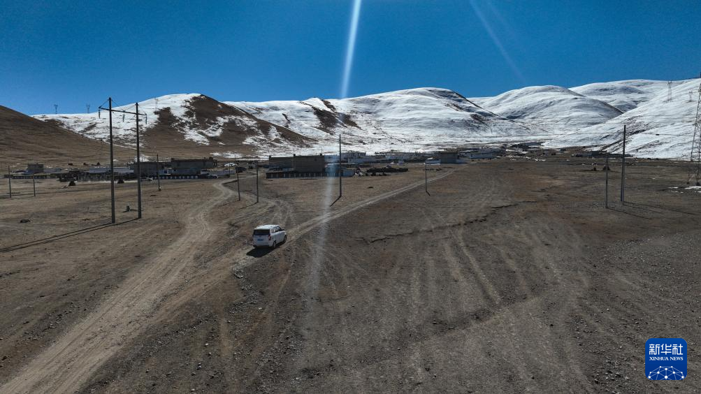 斯曲卓瑪?shù)母赣H開車把女兒接回家中(11月15日攝,無人機(jī)照片)。新華社記者 晉美多吉 攝