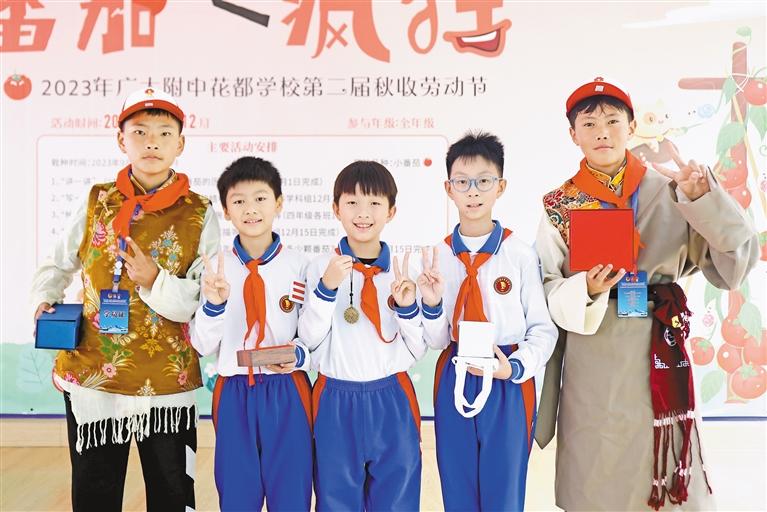 參加冬令營活動的少先隊員與廣大附中花都實驗學(xué)校的新朋友互換禮物并合影。記者 謝筱純 王珊 攝