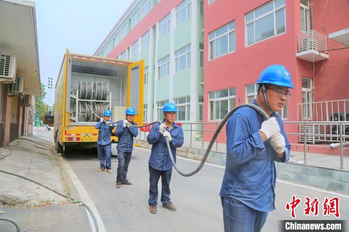 國(guó)網(wǎng)北京朝陽(yáng)供電公司員工在北京西藏中學(xué)開(kāi)展高考保電工作。翟磊 攝