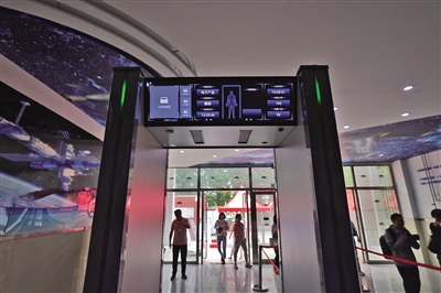北航實驗學校考點,升級后的智能安檢門。新京報記者 李木易 攝