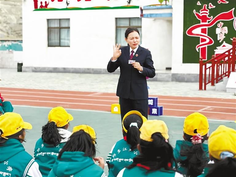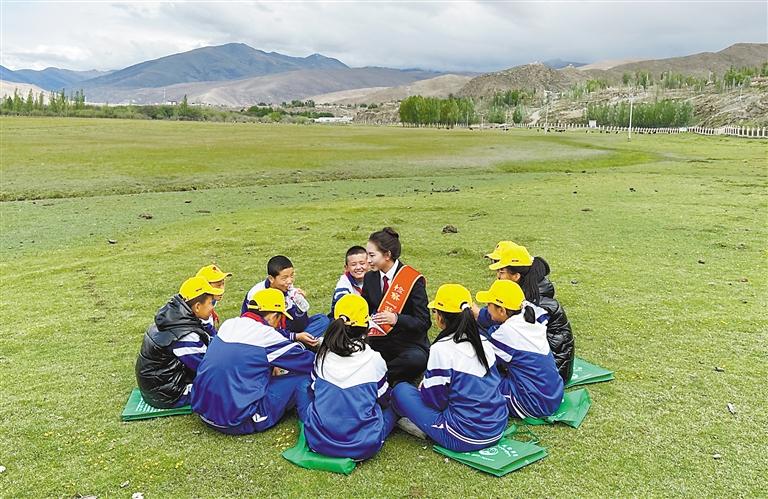 日前,曲松縣人民檢察院的檢察官在下落國家濕地公園舉行“法治小課堂”,為學生沉浸式講授濕地保護領(lǐng)域公益訴訟典型案件及政策法規(guī)。記者 丹增平措 攝