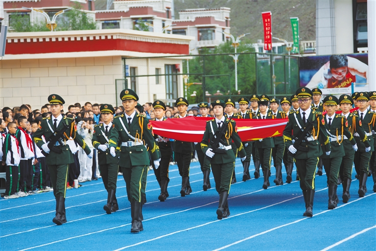拉薩北京實驗中學(xué)舉行升國旗儀式。