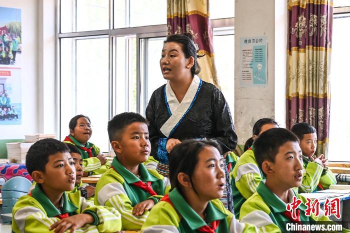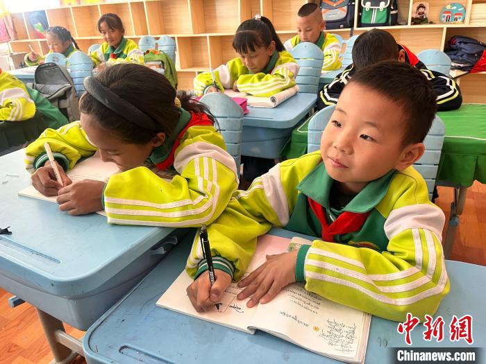 與此同時,四年級2班的漢族學(xué)生劉念恩正在上藏語文課,他抄寫有些慢,同桌的女生立刻用筆幫他找到對照位置。“我們班只有我一個漢族,我也要上藏語文課,同學(xué)們和我關(guān)系非常好,我們經(jīng)常一起踢足球?!眲⒛疃髡f。