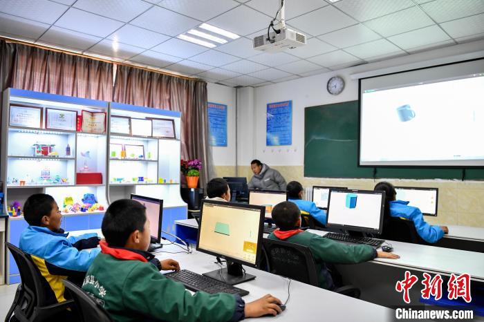 10月25日,在西藏自治區(qū)那曲市聶榮縣中學(xué),學(xué)生在老師的帶領(lǐng)下學(xué)習(xí)3D建模。中新社記者 貢嘎來松 攝