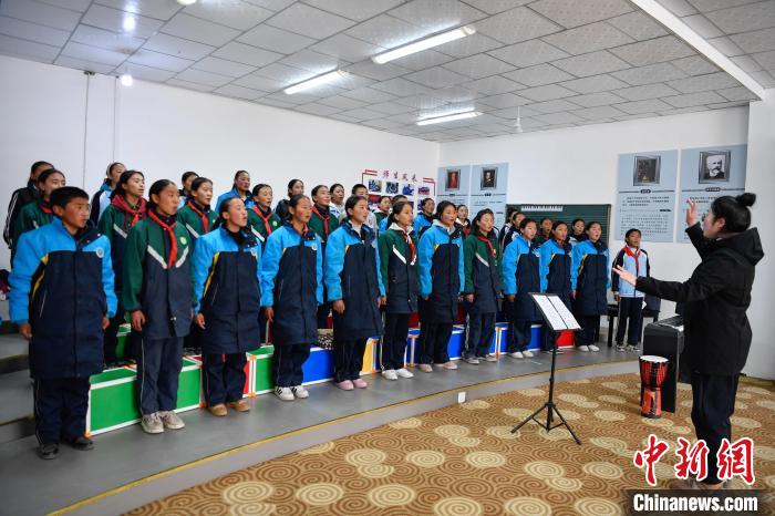 10月25日,在西藏自治區(qū)那曲市聶榮縣中學(xué),學(xué)生在老師的帶領(lǐng)下學(xué)習(xí)合唱。中新社記者 貢嘎來松 攝