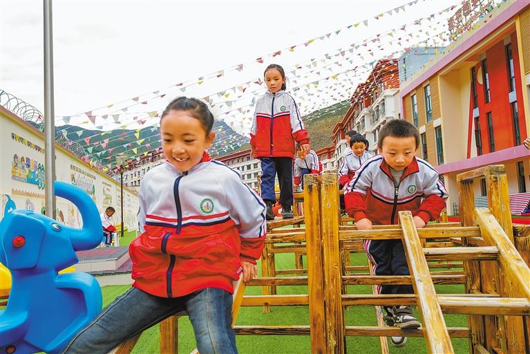 圖為昌都市邊壩縣第一小學學生在課間快樂地玩耍。記者 丹增群培 攝