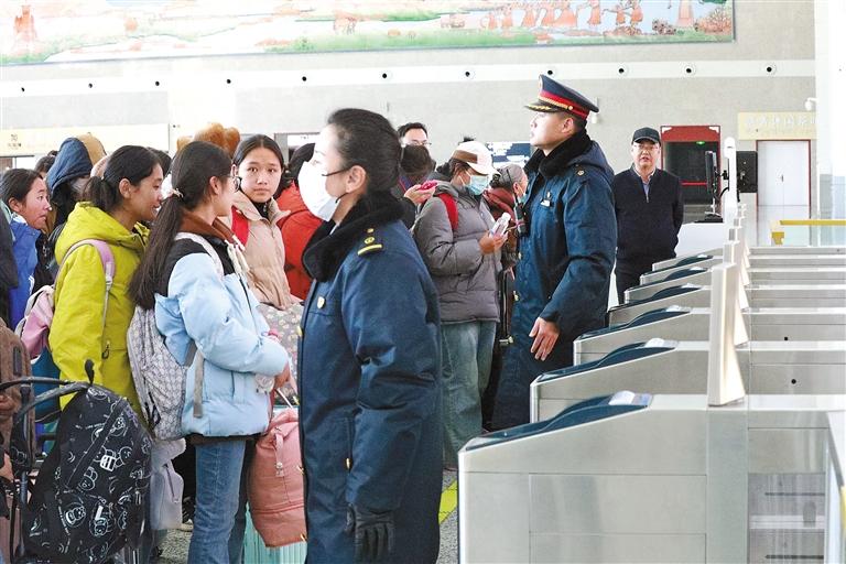 近日,為更好地服務(wù)學(xué)生寒假返鄉(xiāng),山南火車站積極與當(dāng)?shù)馗鲗W(xué)校聯(lián)系接洽,及時掌握返鄉(xiāng)學(xué)生的具體人數(shù)及客票、乘車需求等信息,并增設(shè)了學(xué)生票辦理專窗,安排專人引導(dǎo)。同時,山南火車站還組織人員在安檢口、檢票口、電扶梯、站臺等關(guān)鍵區(qū)域加強引導(dǎo)幫扶,特別開辟了學(xué)生安檢專用通道,幫助學(xué)生快速驗證進站,減少等待時間。