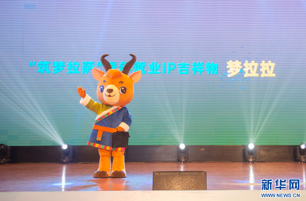 4月27日,活動(dòng)現(xiàn)場(chǎng)公布“筑夢(mèng)拉薩”青年就業(yè)IP吉祥物“夢(mèng)拉拉”。新華網(wǎng) 旦增努布 攝