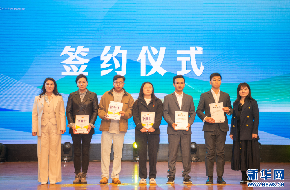 4月27日,5名大學(xué)生代表簽署創(chuàng)業(yè)孵化協(xié)議。新華網(wǎng) 旦增努布 攝