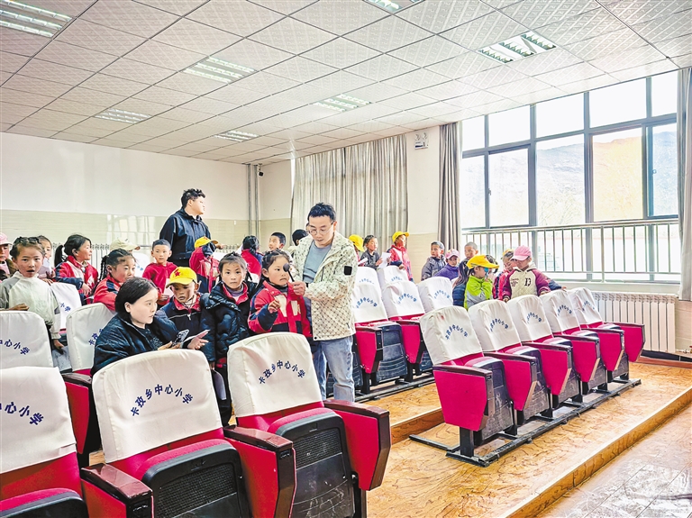 工作人員為學(xué)生進(jìn)行裸眼視力測試。記者 央金 攝