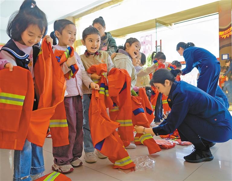 小朋友們穿上“迷你”搶險救援服。