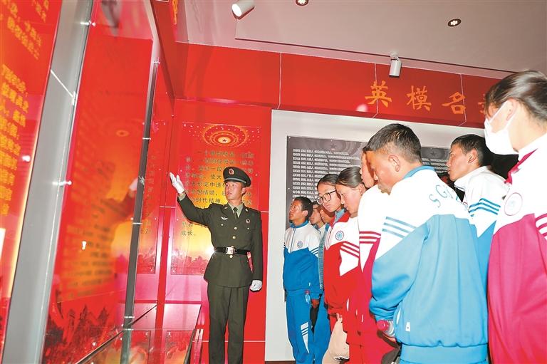 官兵帶領(lǐng)學(xué)生參觀紅色紀(jì)念場館。遲浩鵬 攝
