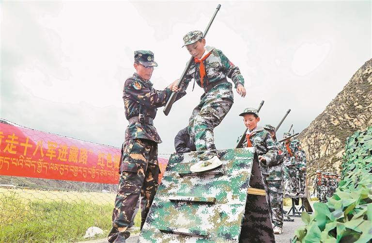 圖為學生在體驗跨障礙物訓練。記者 格桑倫珠 攝