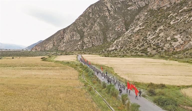 圖為學生在重走一段十八軍進藏路。記者 格桑倫珠 攝