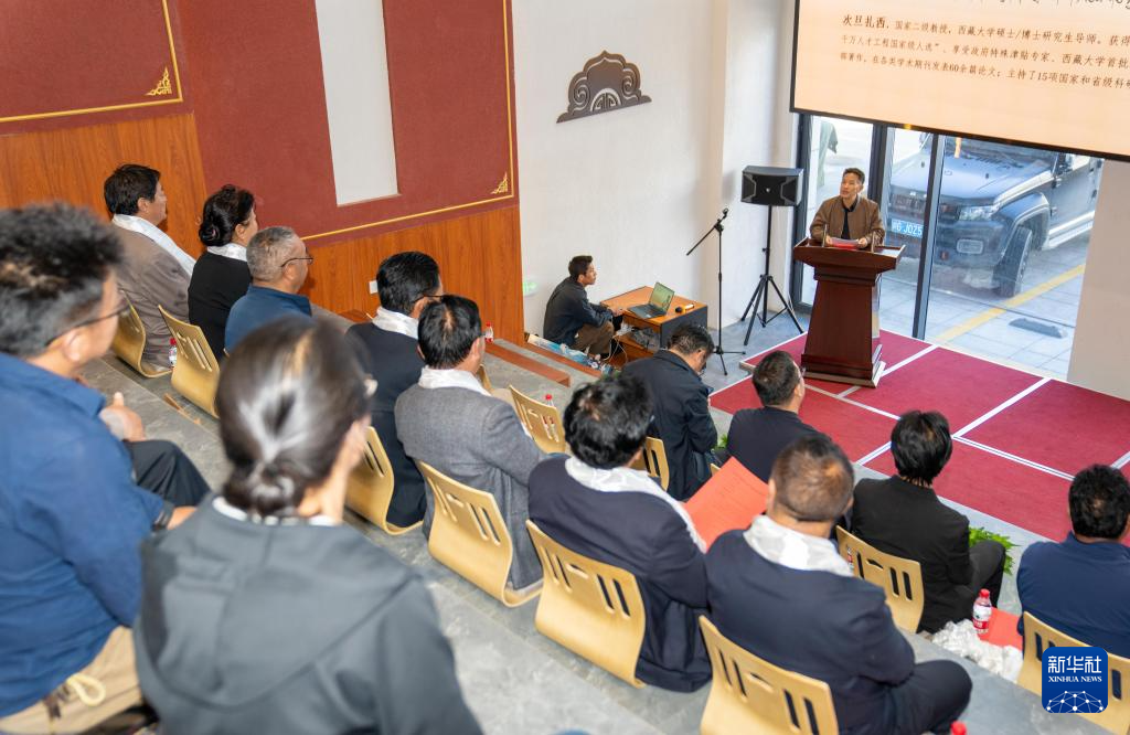 9月13日,西藏大學(xué)次旦扎西教授在現(xiàn)場進行主旨發(fā)言。新華社記者 旦增尼瑪曲珠 攝