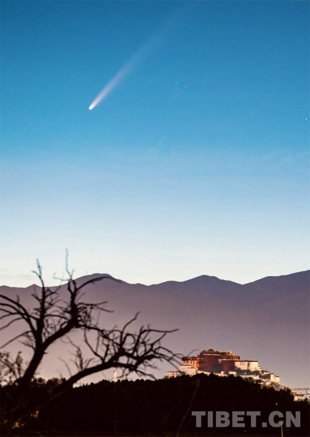 圖為紫金山-阿特拉斯彗星與布達拉宮同框(攝于2024年9月30日) 攝影:李珩
