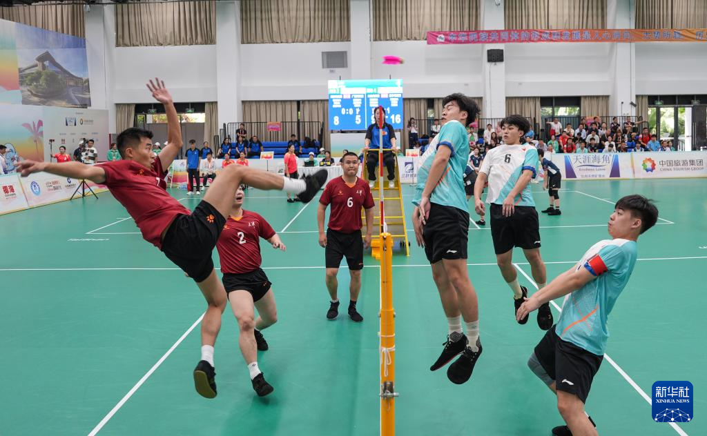 23日,第十二屆全國(guó)少數(shù)民族傳統(tǒng)體育運(yùn)動(dòng)會(huì)(以下簡(jiǎn)稱“運(yùn)動(dòng)會(huì)”)毽球項(xiàng)目在海南三亞中瑞酒店管理職業(yè)學(xué)院開賽,斗志昂揚(yáng)的西藏隊(duì)與沉穩(wěn)老練的香港隊(duì)在男子三人小組賽中相遇。頭球、倒鉤球、掃堂腿、腳底扣球絕殺……雙方你追我趕,觀眾看得目不轉(zhuǎn)睛。