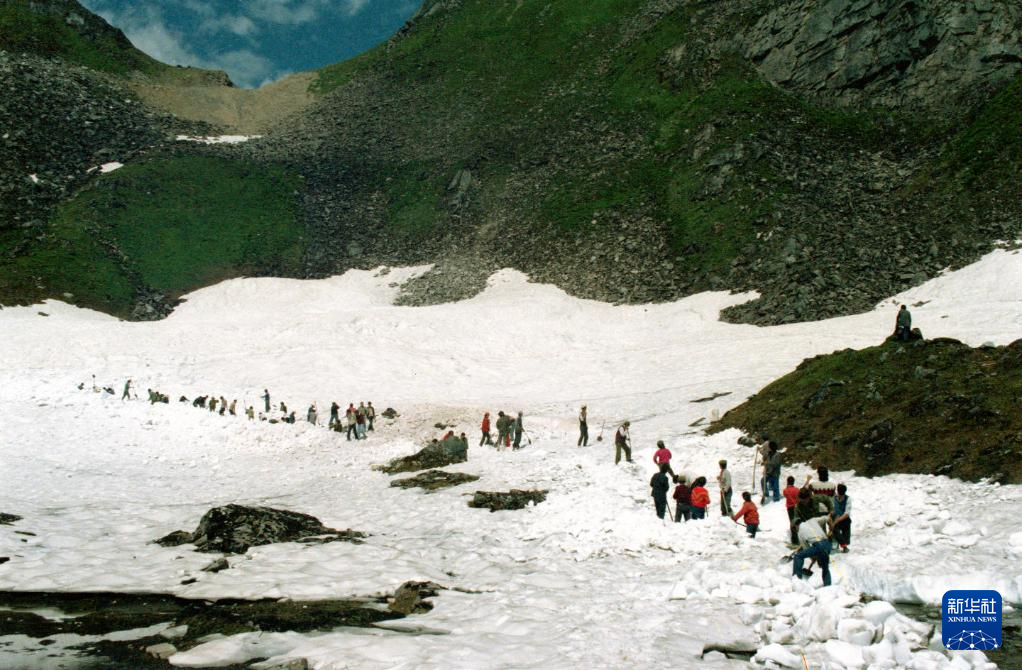 西藏墨脫地處雅魯藏布江大拐彎的下游,四周為巖層不穩(wěn)定的雪山所包圍。這是夏季8月,工人們挖開9米厚的冰川修筑公路。新華社記者 丁力 攝(1990年11月19日發(fā))