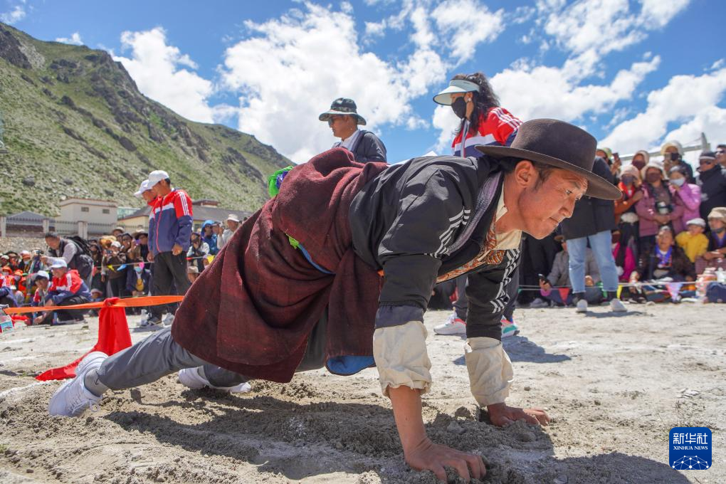 2023年7月20日,聶拉木縣波絨鄉(xiāng)代表隊選手次仁多吉在押加比賽中。7月18日至21日,西藏日喀則市聶拉木縣2023年農(nóng)牧民運動會在聶拉木縣公共體育場舉行。新華社記者 邵澤東 攝