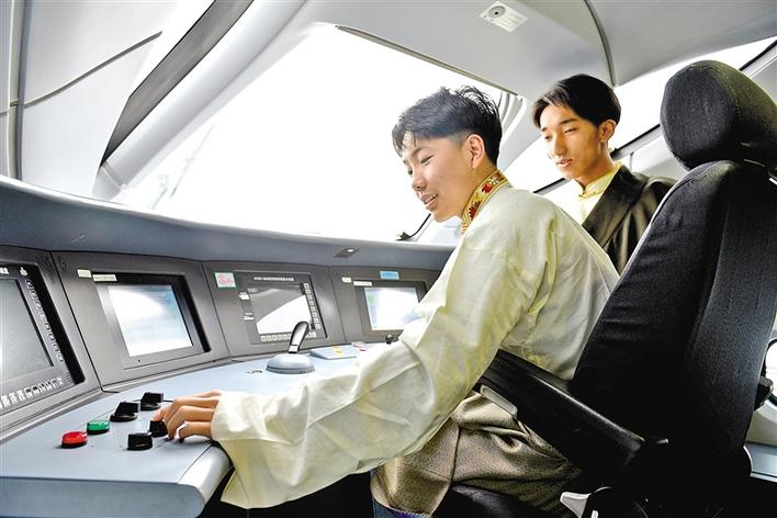 來自山西大學(xué)附屬中學(xué)西藏班的學(xué)生們在返鄉(xiāng)前,走進(jìn)太原動(dòng)車所探秘高鐵。圖為學(xué)生在動(dòng)車機(jī)械師的引導(dǎo)下,體驗(yàn)高鐵技術(shù)。張晉彤 記者 丹增平措 攝