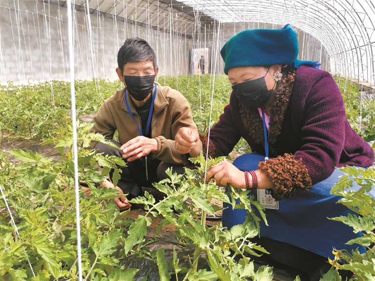 近年來,西藏拉薩市積極推動(dòng)農(nóng)業(yè)產(chǎn)業(yè)化建設(shè),并加快農(nóng)業(yè)基礎(chǔ)設(shè)施建設(shè)、農(nóng)業(yè)科技創(chuàng)新與推廣、新型職業(yè)農(nóng)民與農(nóng)業(yè)科技人才培育等。在規(guī)?;F(xiàn)代化的農(nóng)業(yè)產(chǎn)業(yè)帶動(dòng)下,越來越多的農(nóng)牧民群眾也意識到技術(shù)的重要性,他們逐漸開始學(xué)習(xí)新型種植技術(shù),積極從一般農(nóng)牧民向懂技術(shù)、懂管理、能致富的“職業(yè)農(nóng)民”轉(zhuǎn)型。圖為墨竹工卡縣易地扶貧搬遷戶央宗在技術(shù)員的指導(dǎo)下學(xué)習(xí)西紅柿掐苗掛藤技術(shù)。