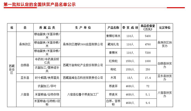首批《全國(guó)扶貧產(chǎn)品名單》公布 西藏四縣區(qū)產(chǎn)品上榜