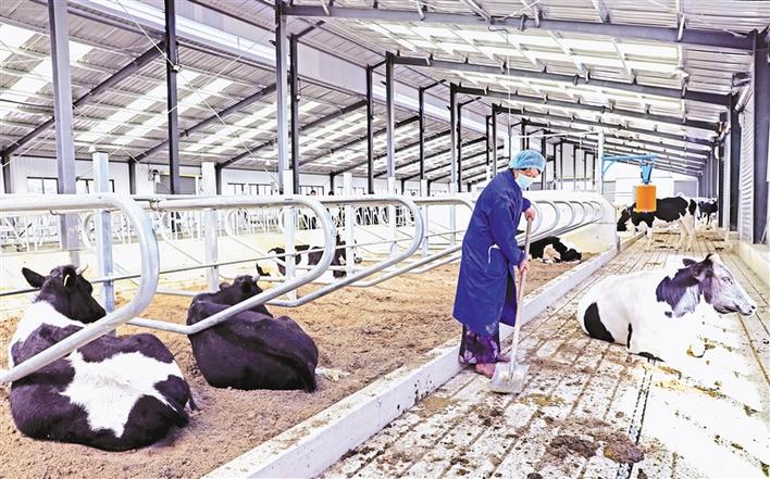 圖為養(yǎng)殖中心工作人員正在清理牛舍。本報(bào)通訊員 洛??酥?記者 唐斌 攝