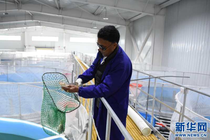 9月13日,工作人員查看亞?wèn)|鮭魚生長(zhǎng)情況。新華網(wǎng) 張宸 攝