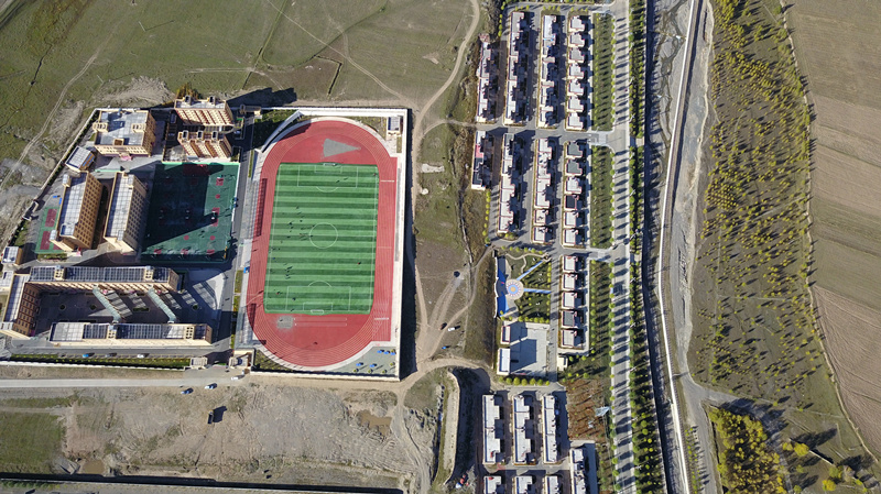 在甘孜州甘孜縣吉絨隆溝易地扶貧安置點,旁邊的十八軍窯洞遺址群展現著這里的紅色血脈。遠處雪山座座相連,不遠處縣城邊雅礱江河谷地帶,景色醉人。