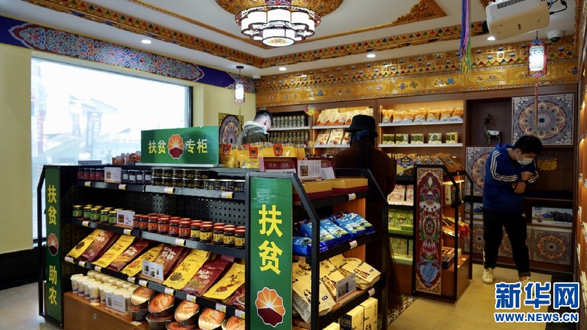 10月20日攝于拉薩功德林加油站內(nèi)的扶貧專柜。新華網(wǎng) 達珍攝