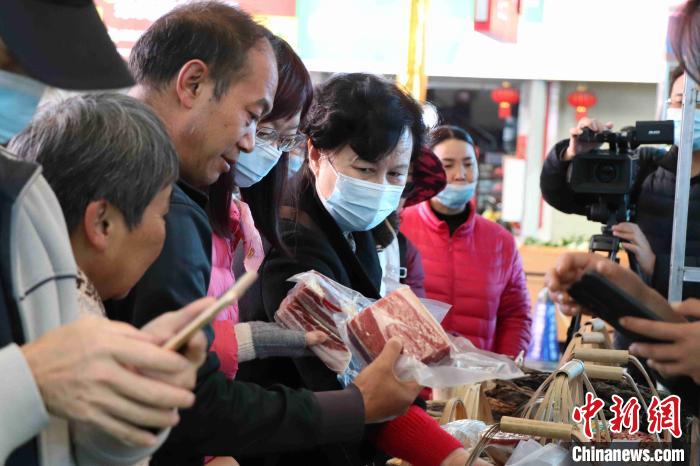 圖為昆明市民了解選購東川“脫貧山貨”?!】姵z