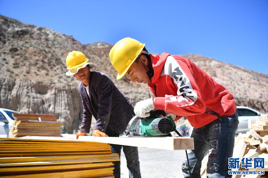 西藏昌都市八宿縣吉達(dá)鄉(xiāng)仲沙村村民平措,在八宿縣西巴易地扶貧搬遷安置點(diǎn)的工地上勞作(5月10日攝)。2019年,平措和家人搬遷到西巴易地扶貧搬遷安置點(diǎn),住進(jìn)了75平方米的新居。平措還在安置點(diǎn)找到了一份建筑工的工作,每個月有4000多元的收入。新華社記者 詹彥 攝