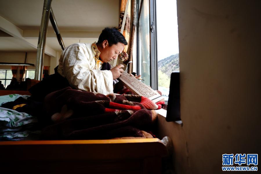 在西藏昌都市江達(dá)縣波羅鄉(xiāng)木松民族手工藝有限責(zé)任公司,波羅鄉(xiāng)村民白瑪加村在制作木刻(5月1日攝)。白瑪加村2017年開始學(xué)習(xí)波羅木刻,如今已經(jīng)出師,成為一個熟練的木刻藝人,一個月能制作6塊木刻作品,每個月有4000多元的收入。新華社記者 詹彥 攝
