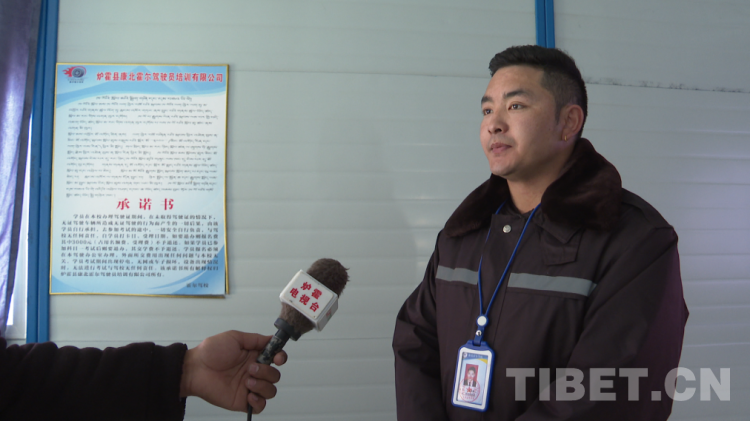 圖為爐霍電視臺記者采訪駕校工作人員 作者提供