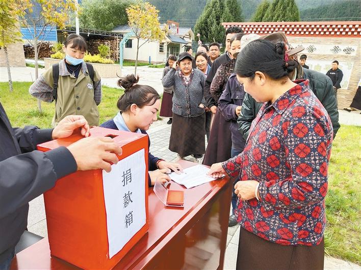 圖為村黨支部在組織黨員為央珍捐款。記者 胡文 通訊員 楊志宏 攝
