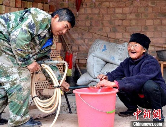 圖為甘肅天水市武山縣水務(wù)局助農(nóng)戶(hù)吃上“幸福水”。(資料圖)甘肅省水利廳供圖