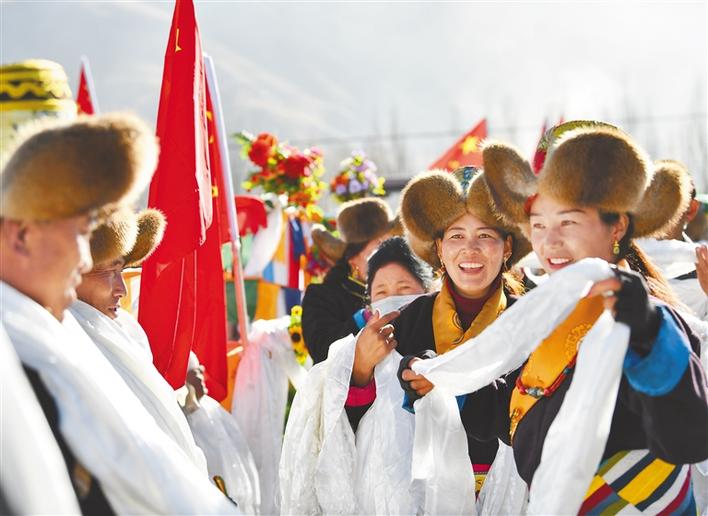 圖為3月16日,克松社區(qū)居民身著節(jié)日盛裝齊聚田野,在古老的《春耕之歌》的悠揚(yáng)旋律中舉行春耕儀式。新華社記者 晉美多吉 攝