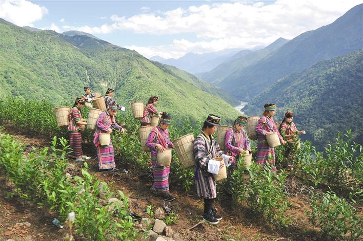 墨脫縣背崩鄉(xiāng)群眾在茶山采茶。