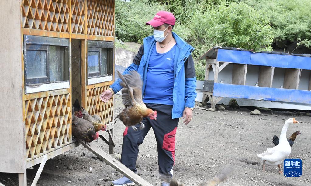 9月15日,西藏定結(jié)縣陳塘鎮(zhèn)養(yǎng)雞場(chǎng)負(fù)責(zé)人拉巴塔杰在放養(yǎng)藏雞。新華社發(fā)(索朗羅布 攝)