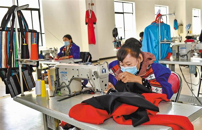 圖為在山南市嘩嘰手工編織專(zhuān)業(yè)合作社工作的殘疾人。記者 唐斌 丹增群培 攝