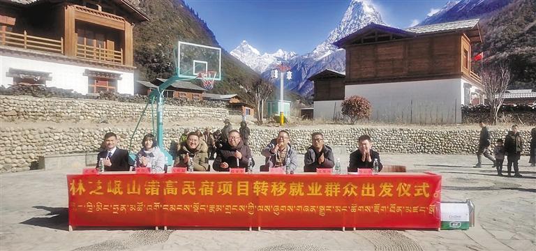 圖為林芝岷山錯高民宿項目轉(zhuǎn)移就業(yè)群眾出發(fā)儀式現(xiàn)場。 記者 張猛 攝