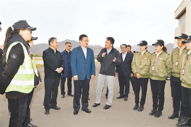 調(diào)研中,王君正強(qiáng)調(diào),黨的十八大以來,習(xí)近平總書記始終高度重視西藏工作、深切關(guān)懷西藏各族人民,親自為西藏工作把舵定向、謀篇布局,為做好西藏工作指明了前進(jìn)方向、提供了根本遵循。自治區(qū)黨委、政府立足西藏實(shí)際,統(tǒng)籌推進(jìn)新興產(chǎn)業(yè)培育、交通基礎(chǔ)設(shè)施和通用航空產(chǎn)業(yè)建設(shè),呈現(xiàn)出良好發(fā)展勢(shì)頭。