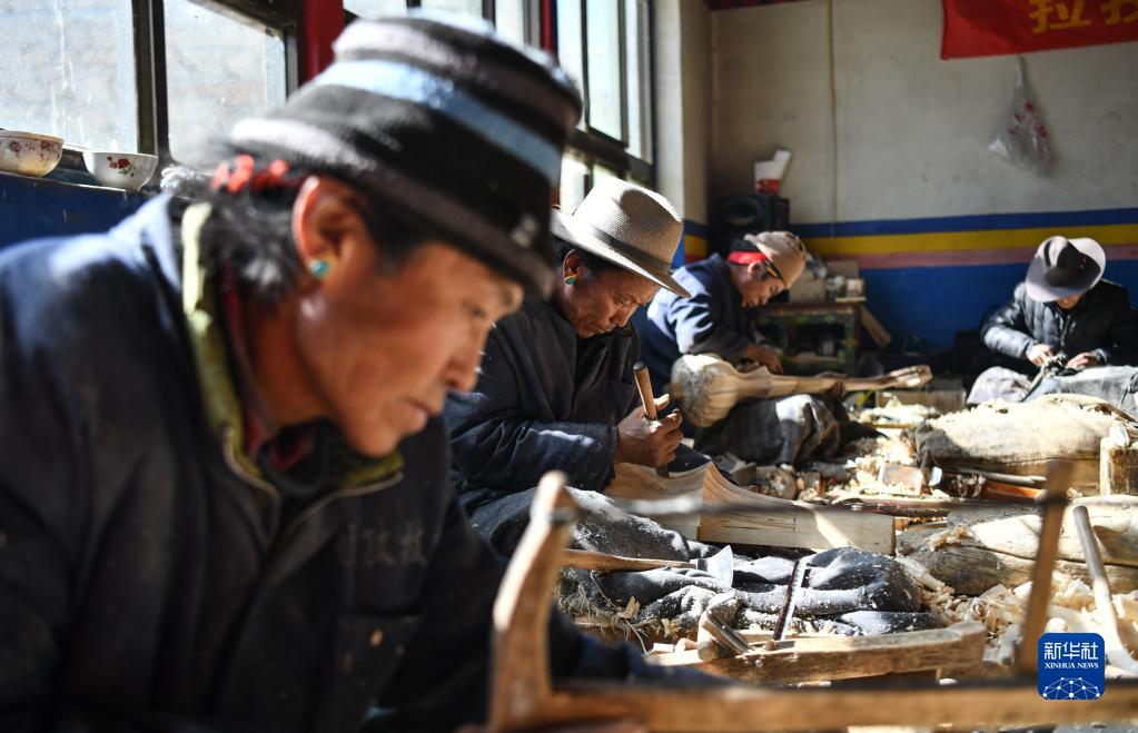合作社的工匠在制作扎念琴(1月19日攝)。新華社記者 晉美多吉 攝
