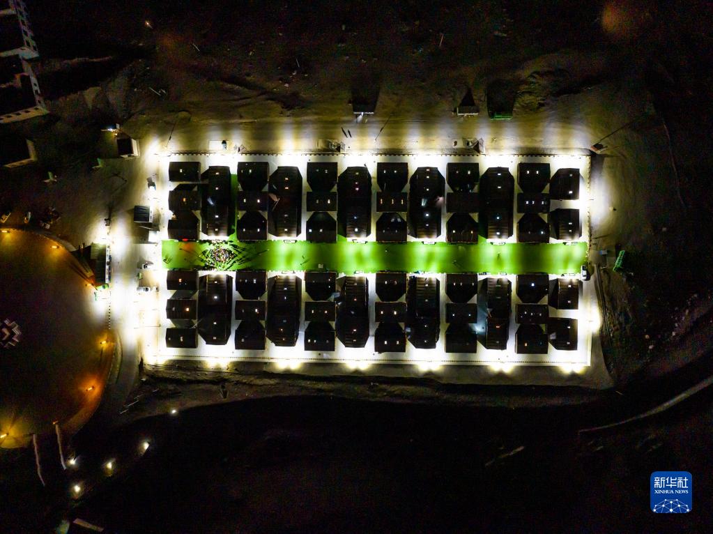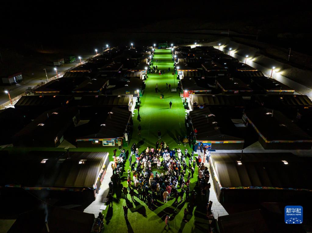 這是夜晚的珠峰游客大本營帳篷旅館(5月16日攝,無人機(jī)照片)。新華社記者 孫非 攝