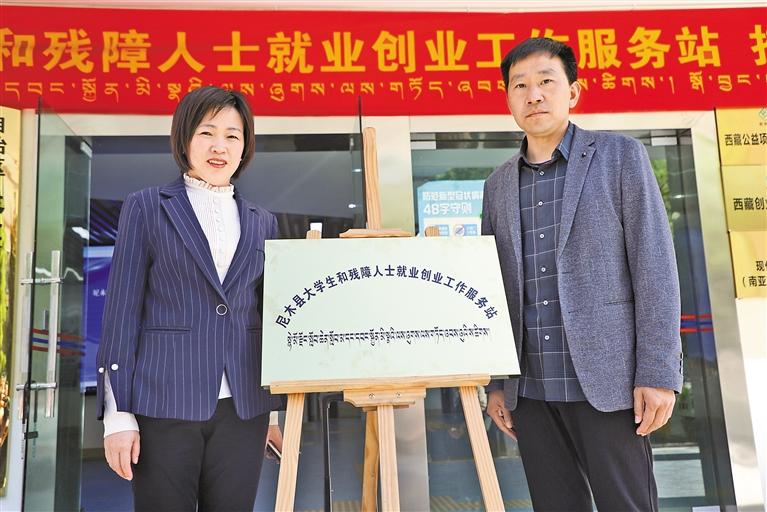 尼木縣大學(xué)生和殘障人士就業(yè)創(chuàng)業(yè)工作服務(wù)站揭牌儀式現(xiàn)場(chǎng)。
