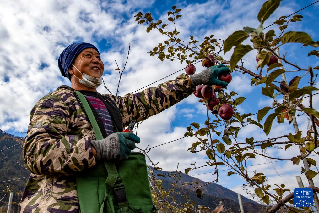米林市羌納鄉(xiāng)西藏林芝現(xiàn)代蘋果標準化園區(qū)內(nèi),農(nóng)民在采摘蘋果(11月13日攝)。新華社記者 姜帆 攝
