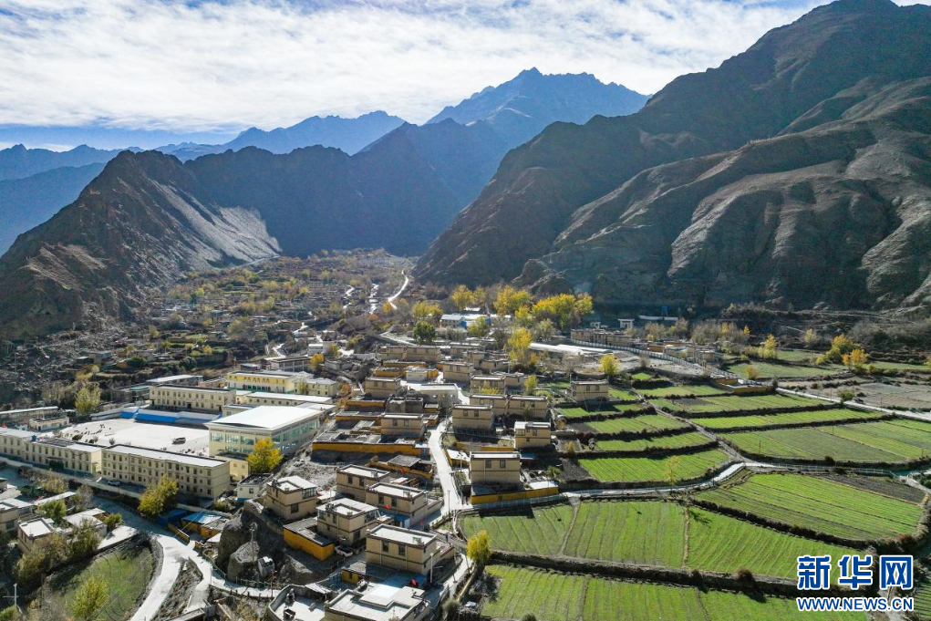11月16日,西藏隆子縣加玉鄉(xiāng)境內(nèi)拍攝的村莊與農(nóng)田(無人機照片)。新華網(wǎng) 柑丹鴦琦 攝