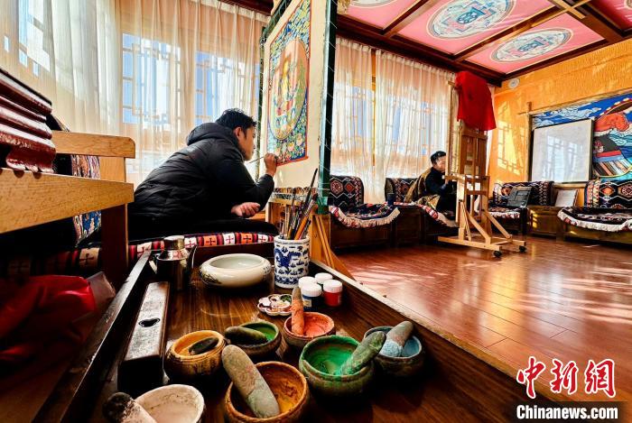 圖為曲水縣民宿內(nèi)唐卡展示。澤塔雍措 攝